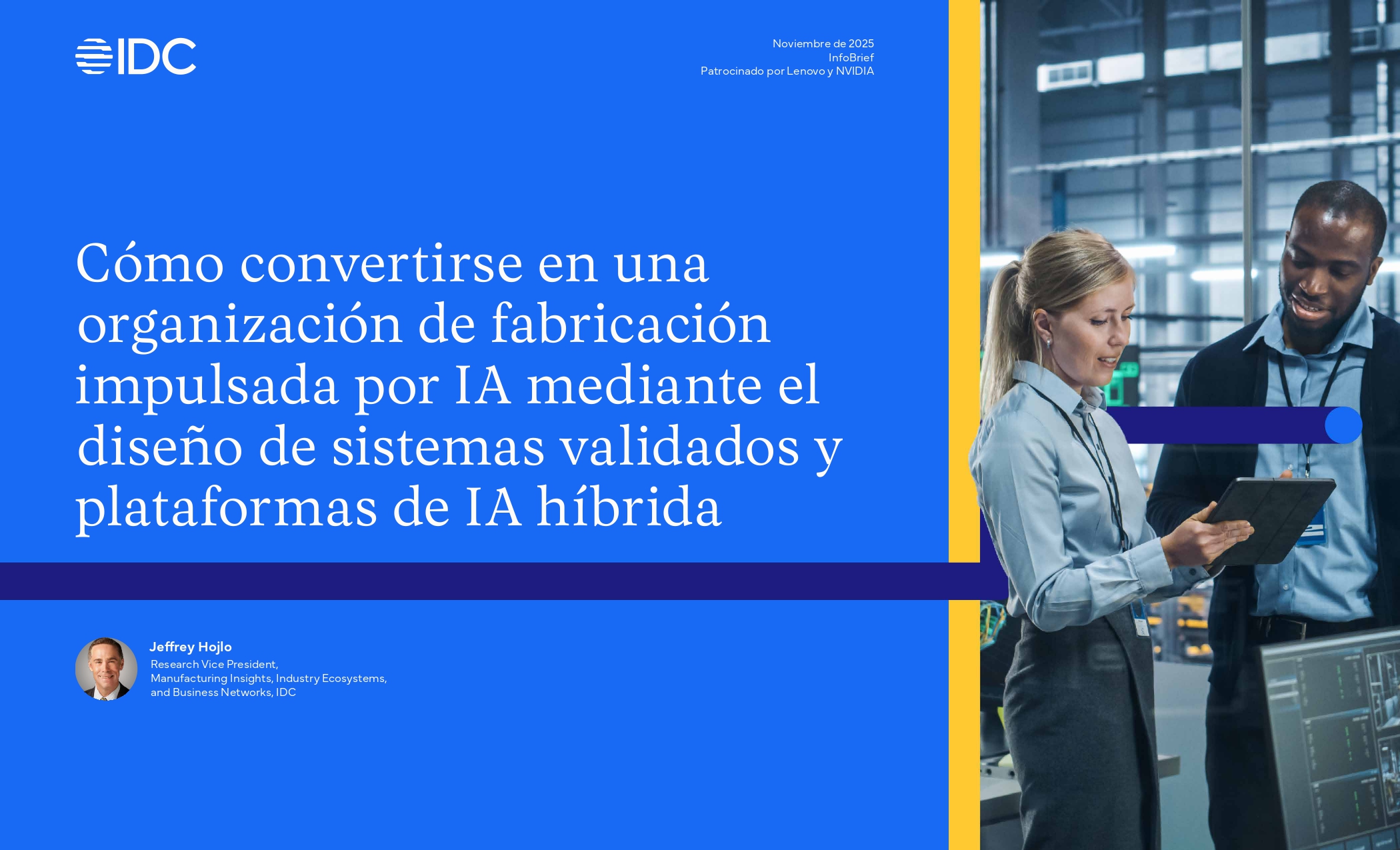 La inteligencia artificial está redefiniendo la forma en que operan las organizaciones manufactureras, pero su adopción efectiva requiere mucho más que algoritmos avanzados. La modernización de la infraestructura tecnológica, la integración de datos y la capacidad de escalar iniciativas de innovación de forma segura son hoy factores críticos para competir en un entorno industrial cada vez más dinámico. Este informe desarrollado por IDC en colaboración con Lenovo y NVIDIA analiza cómo las plataformas de IA híbrida permiten conectar nube, centros de datos y edge industrial para transformar la operación productiva. A través de una visión estratégica y casos de uso concretos, el documento ofrece una guía práctica para avanzar hacia modelos de manufactura más resilientes, eficientes y orientados a datos.
