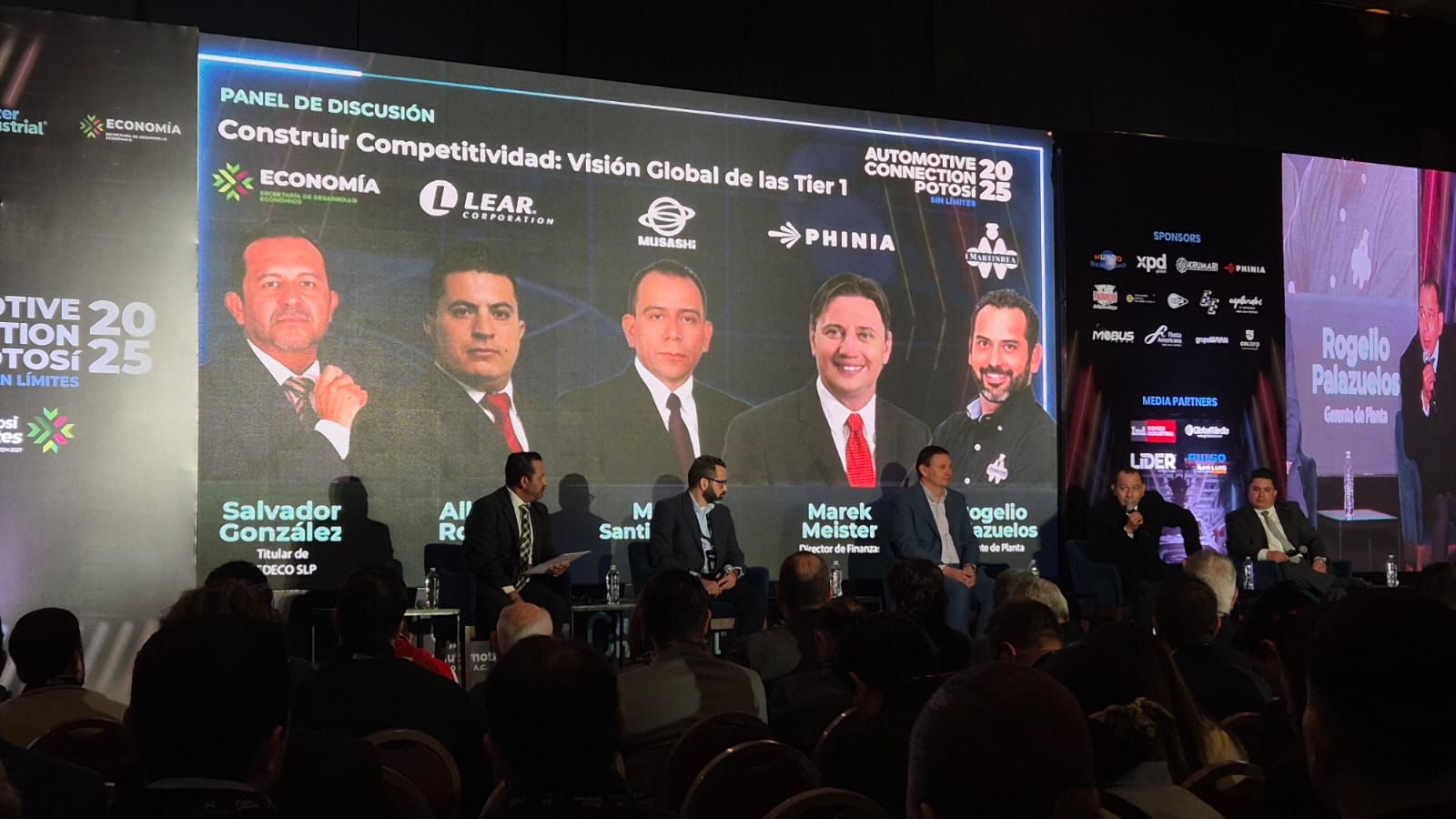 Como parte de la jornada inaugural, se llevó a cabo el panel “Construir competitividad: visión global de las Tier 1”, moderado por Jesús Salvador González, con la participación de Alberto Rosales, director de Operaciones JIT de Lear Corporation, Mario Santiesteban, presidente de Musashi AutoParts México, Marek Meister, director de Finanzas de PHINIA, y Rogelio Palazuelos, director general de Martinrea, quienes compartieron estrategias clave para que las empresas mexicanas aumenten su competitividad global.