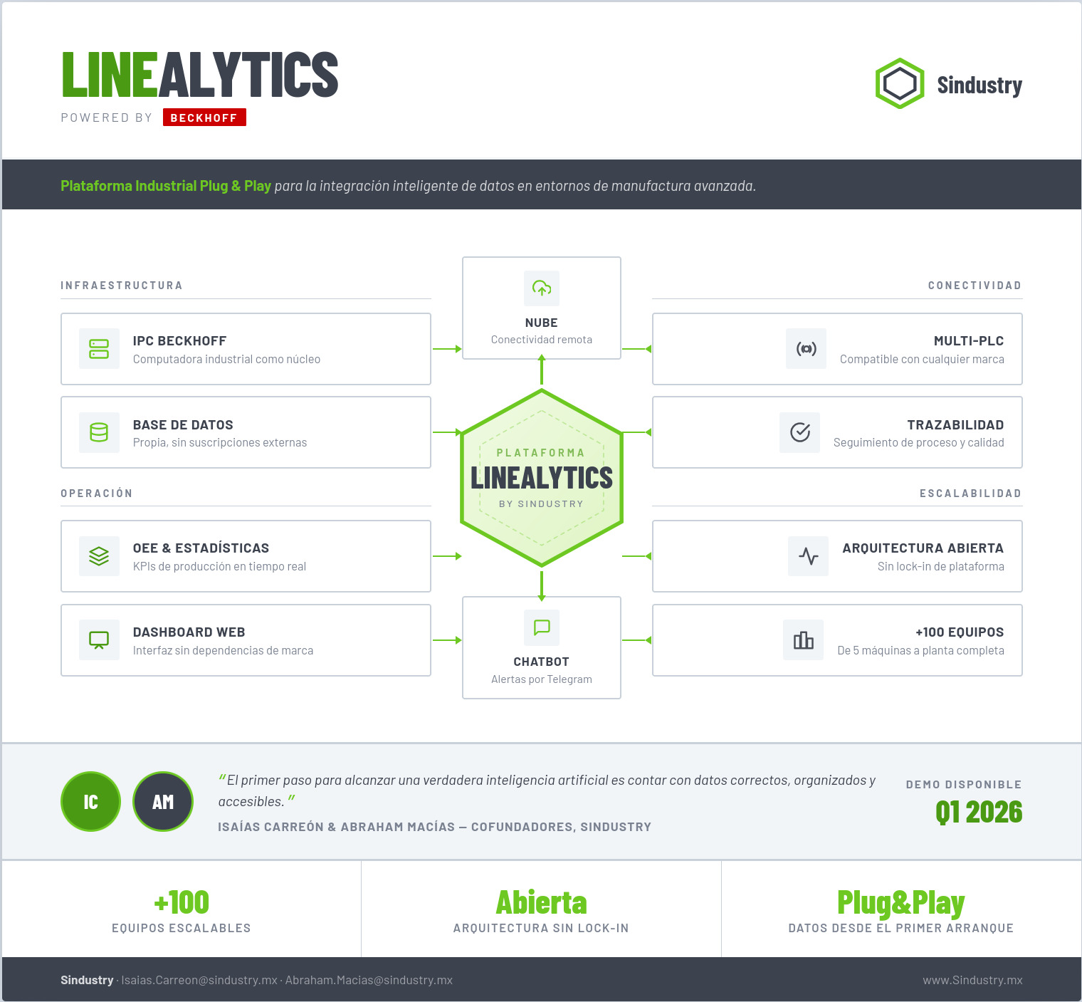 En un entorno donde la digitalización industrial exige integración rápida con infraestructuras existentes, Linealytics articula base de datos, gateway y visualización en una arquitectura coherente que permite transformar datos de planta en información estratégica en tiempo real.
