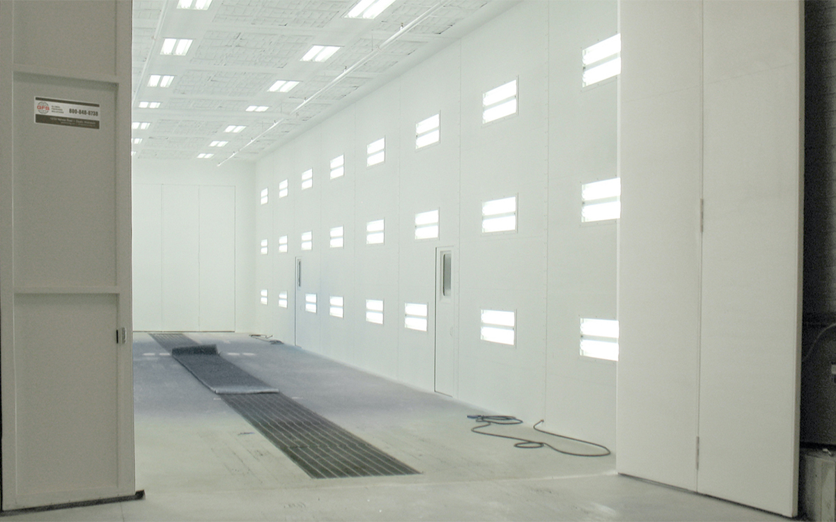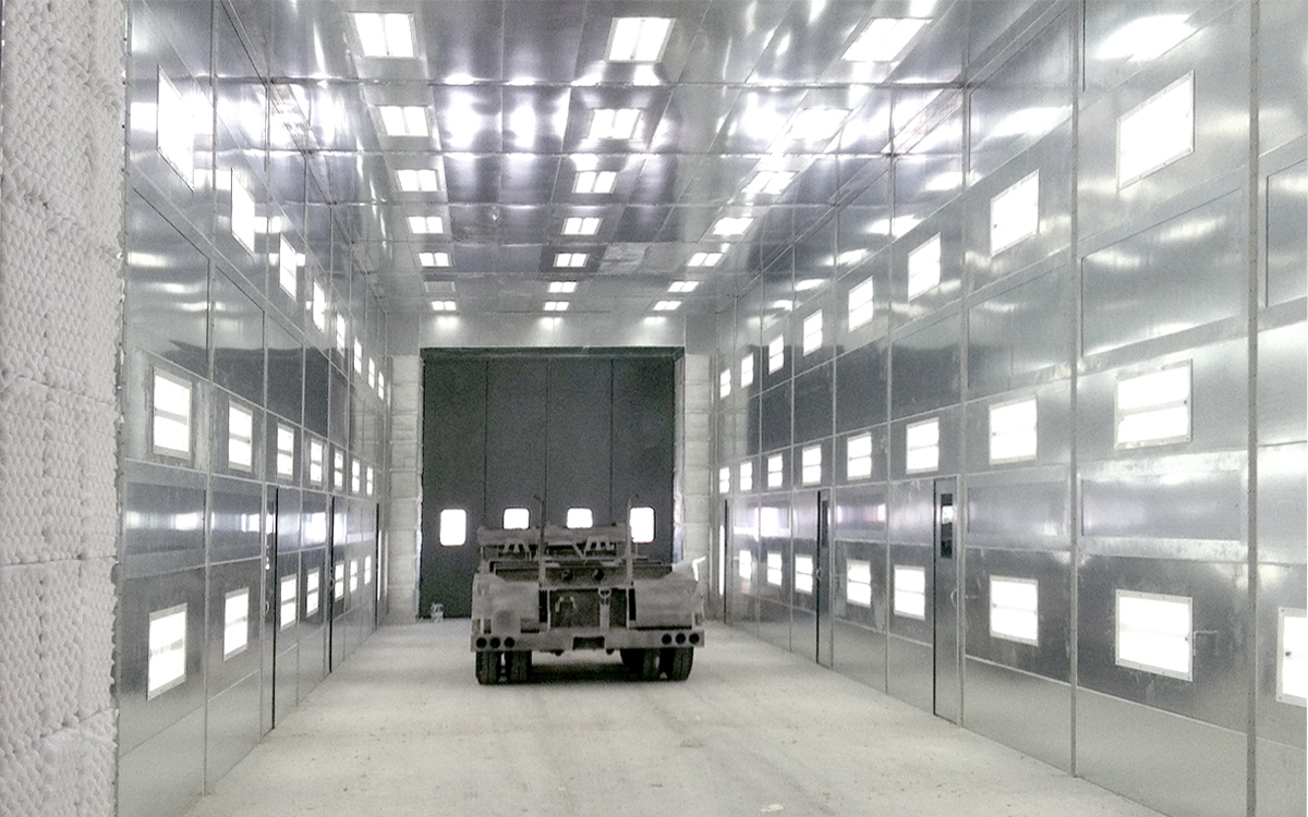 Las cabinas de pintura para equipos grandes se utilizan comúnmente en instalaciones de producción y reparación de sectores como la industria aeroespacial, fabricantes de vagones, autobuses, tractores, remolques y barcos.